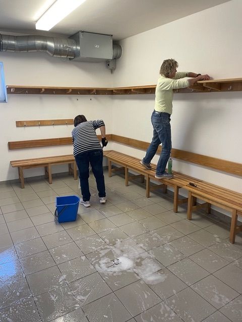 Am vergangenen Wochenende fanden Renovierungsarbeiten im 2008 erbauten Haus der Leichtathletik statt. Der gemeinsame Eingangsbereich zur Toilettenanlage von Sportfreunden und Leichtathleten sowie die Damen- und Herrenumkleidekabinen bekamen einen neuen Anstrich. Dies ist der 1. Sanierungsabschnitt, weitere sollen folgen. So wollen wir im nächsten Jahr die Eingangsbereiche und den Treppenflur in Angriff nehmen. Gerne greifen wir dabei auf bewährte und erfahrene Malerkompetenz zurück!
